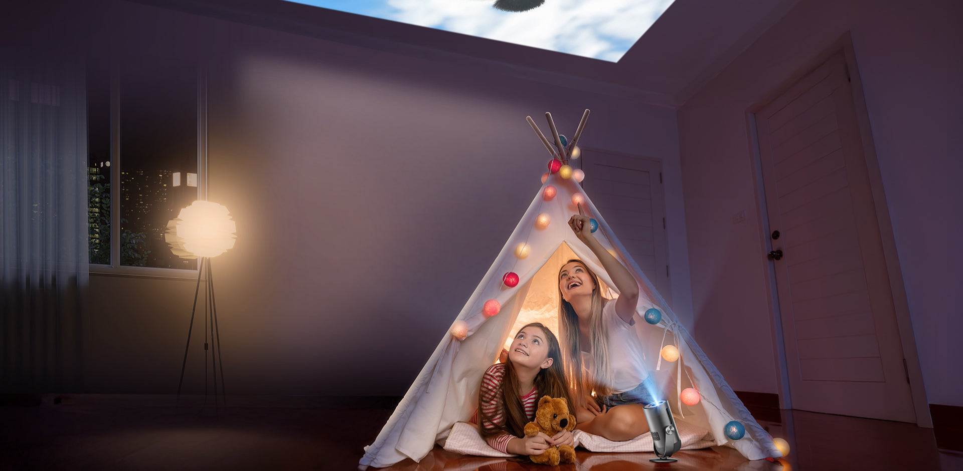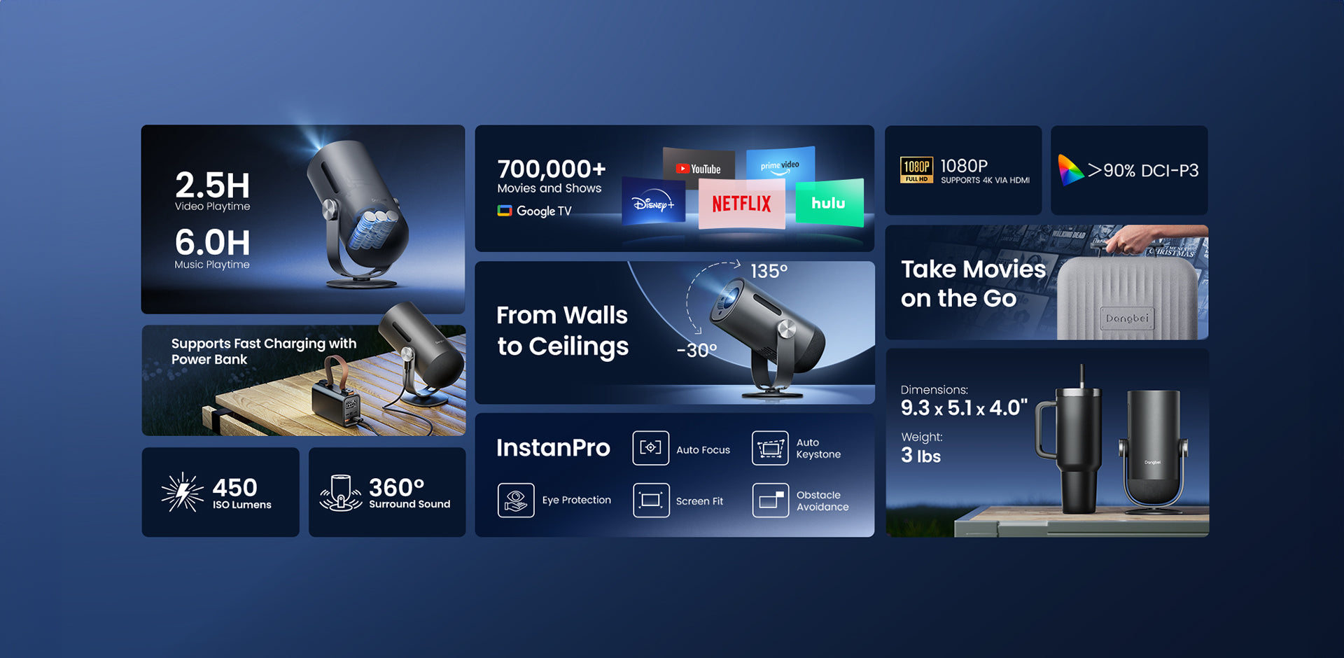 Finish a full Hollywood blockbuster on a single charge with our first ultra-portable projector, uninterrupted.