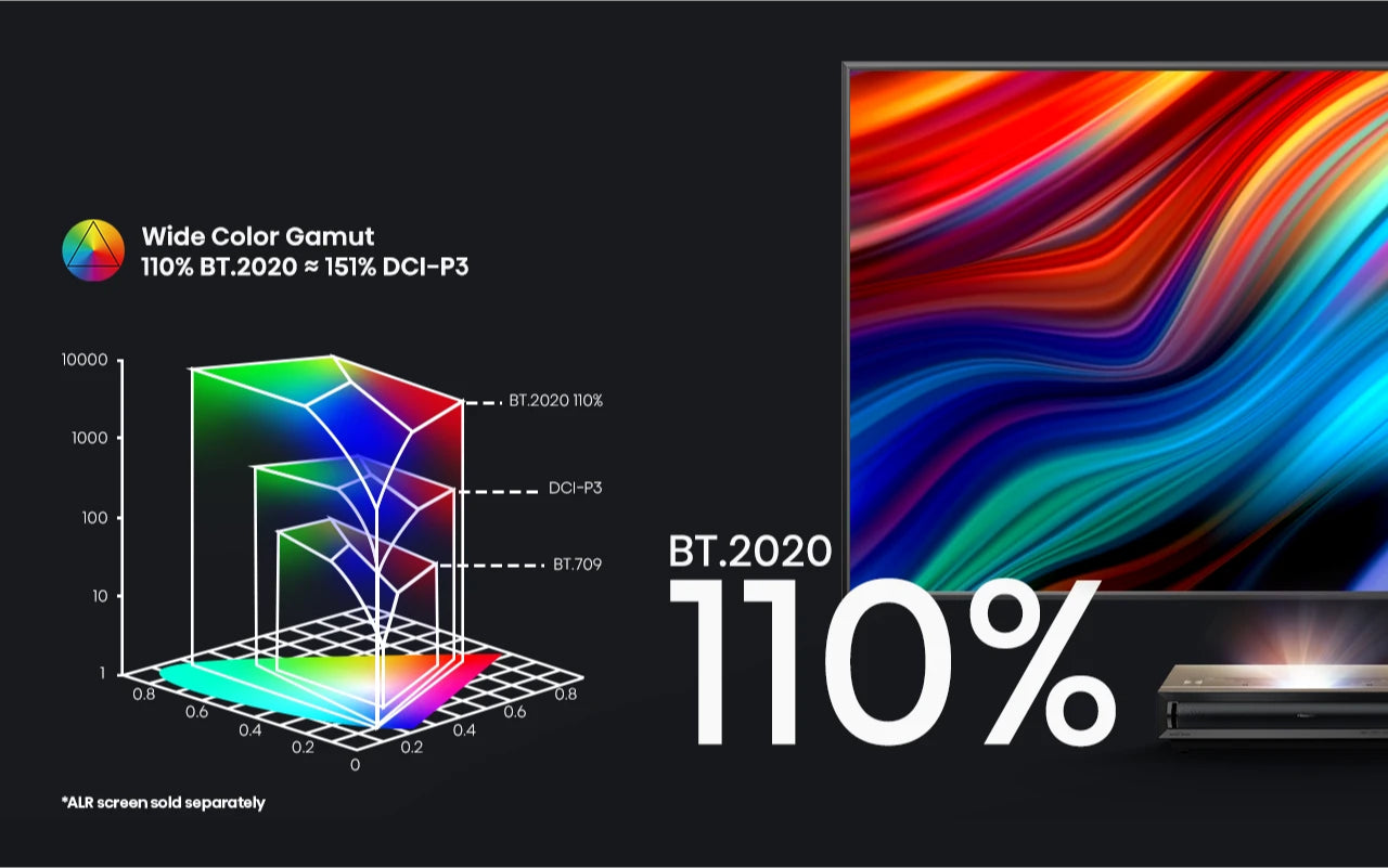 Covering 110% BT.2020 (≈151% DCI-P3) color gamut, PX3-PRO delivers finely tuned contrast, lifelike images, and exceptional color.